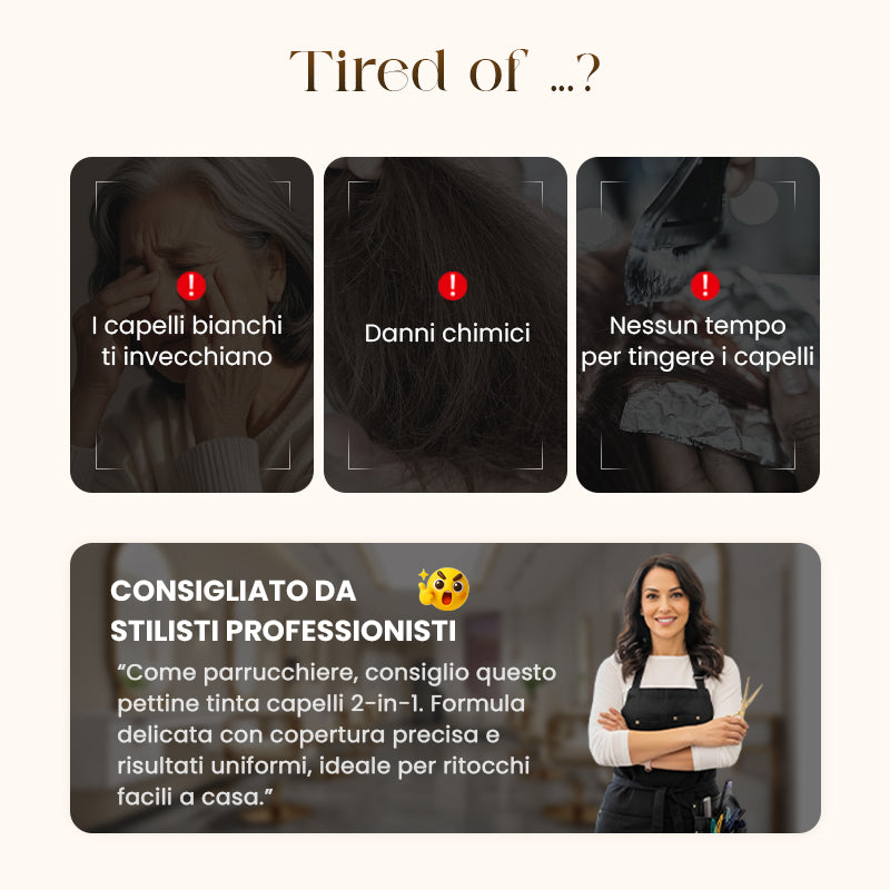 💆♀️ ACQUISTA 1 OTTIENI 1 GRATIS! ✨ PETTINE TINTURA 2-IN-1 - Coprigrigio Rapido e Preciso, Formula Non-Gocciolante con Oli Nutrienti, Applicazione in 5 Minuti 🧴👩🦳