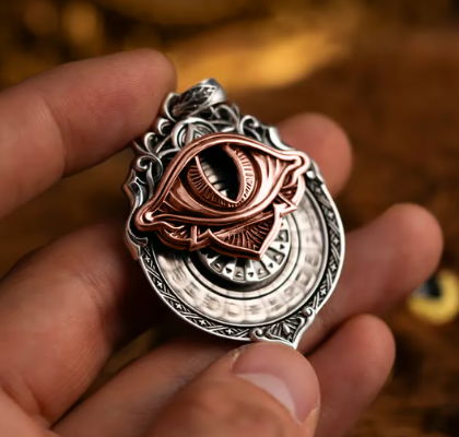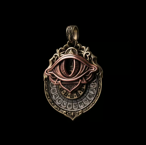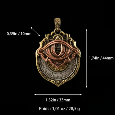 Una mappa stellare sul retro, una silhouette a goccia, l'Occhio radioso: ogni dettaglio intreccia misticismo e astrologia. Senti il battito dell'universo, vicino al tuo cuore. 💓