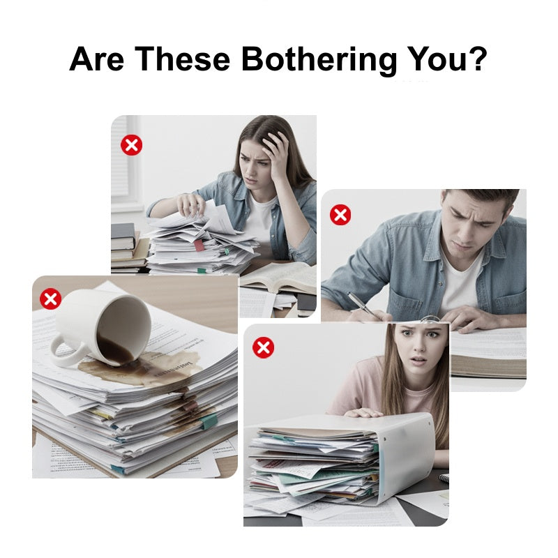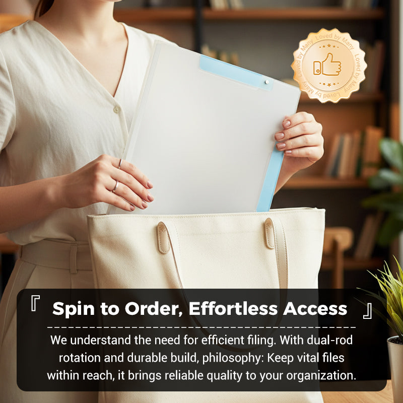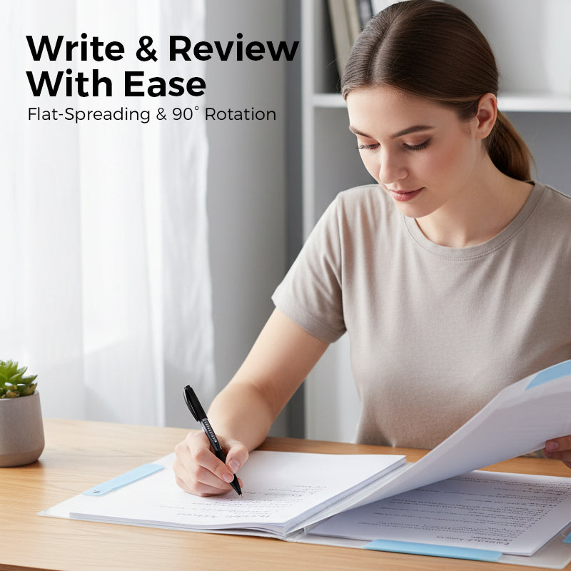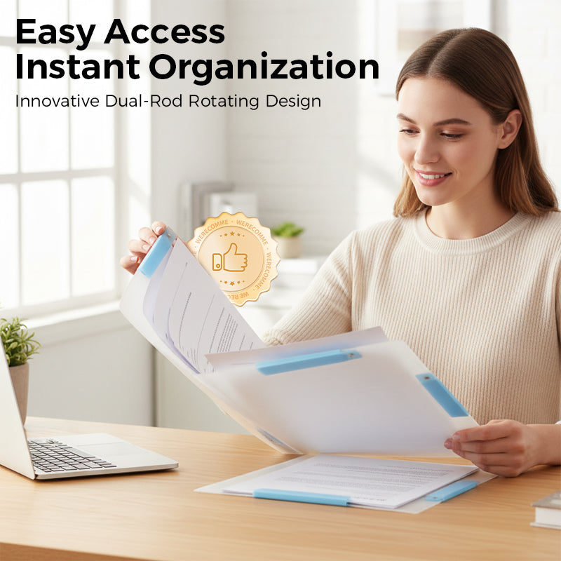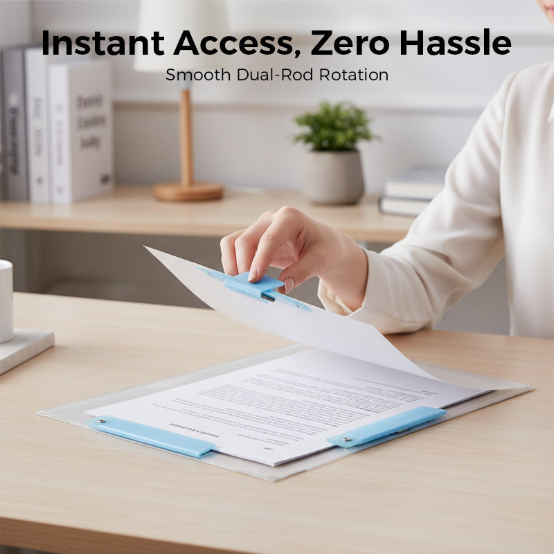 DOPPIE ASTE ROTANTI: Fissa saldamente i tuoi documenti senza bisogno di forare. Questo design innovativo ti consente di aggiungere, rimuovere e riorganizzare facilmente le pagine, mantenendole saldamente in posizione.