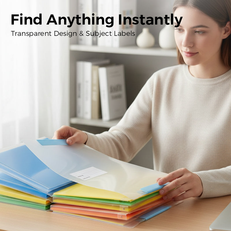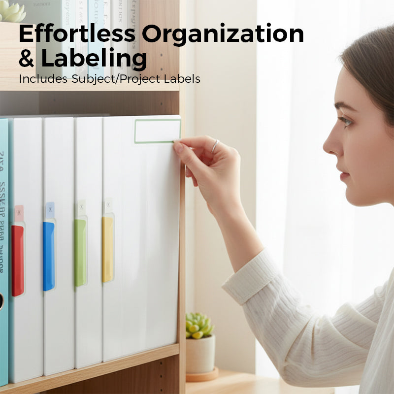 ORGANIZZAZIONE SENZA SFORZO: la nostra cartella è dotata di etichette predefinite per argomento e progetto, che consentono una rapida categorizzazione e una marcatura precisa per una disposizione efficiente dei documenti.