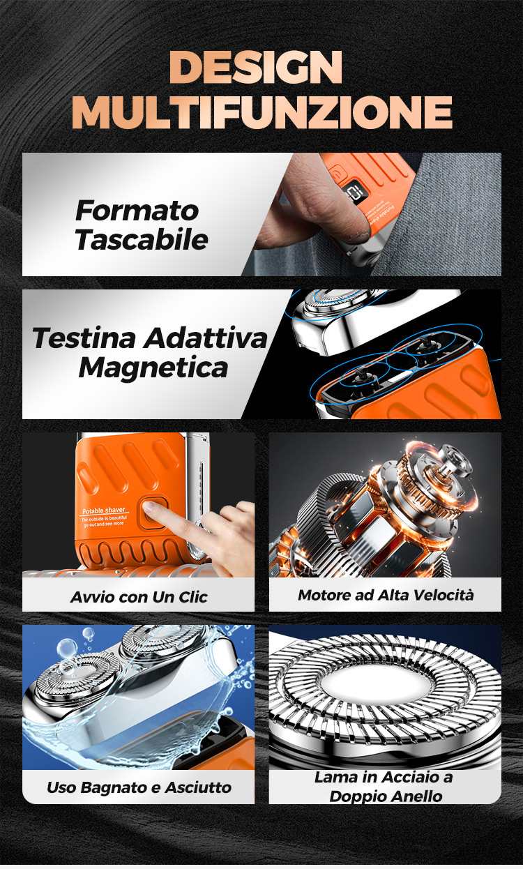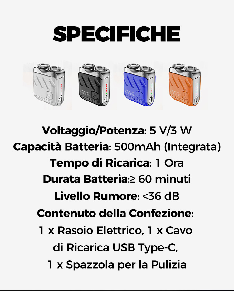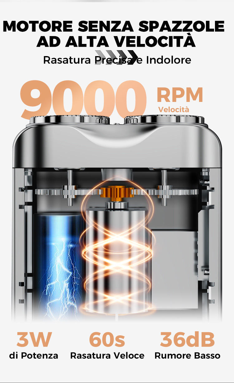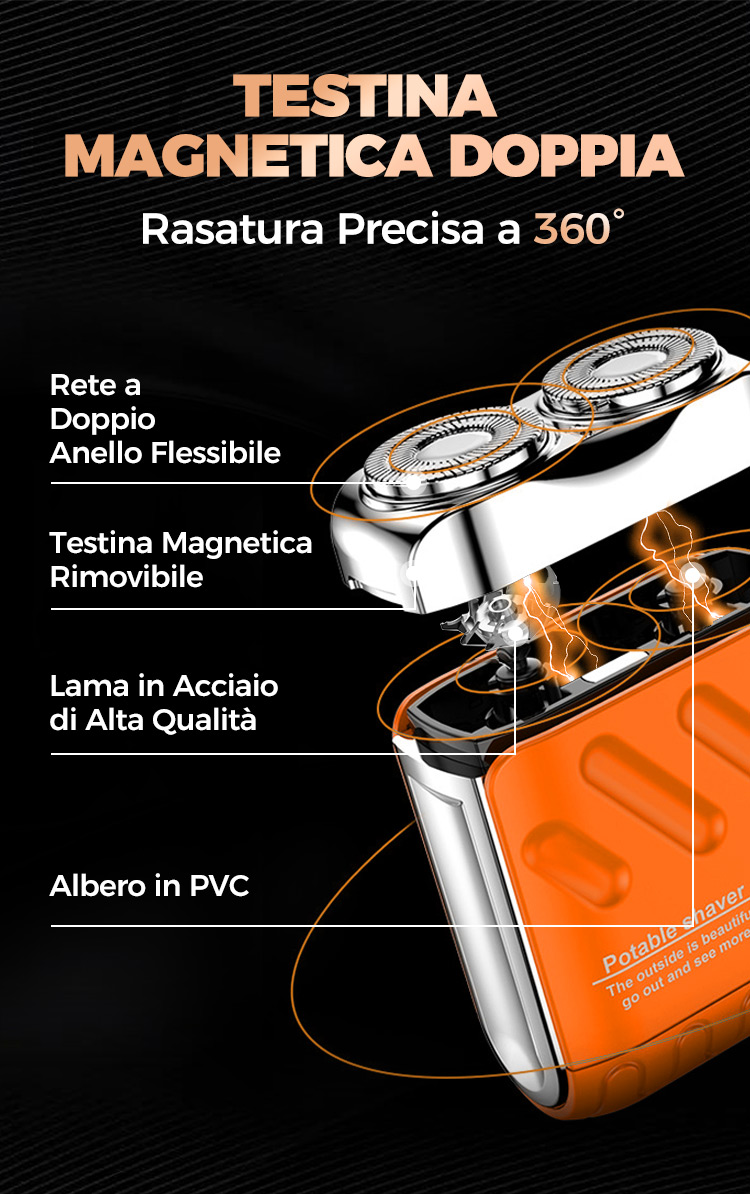 Rasoio Elettrico Rotativo Portatile a Doppio Anello