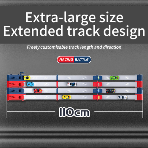 PISTA ESTESA DA 110 CM - Il design extra lungo della pista offre una pista più ampia per azioni ad alta velocità. Questo crea gare più ricche di suspense e consente alle auto di raggiungere il massimo slancio per finali emozionanti al fotofinish ogni volta.
