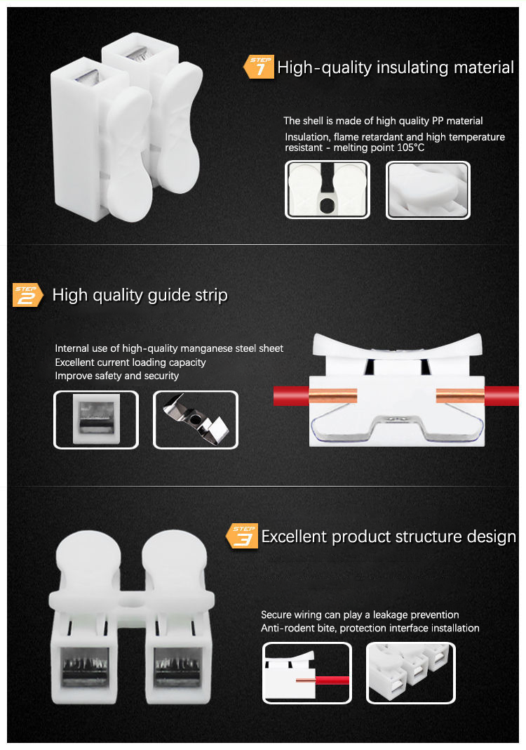 Comodo da usare: il collegamento rapido dei cavi senza forare le viti velocizza il processo di cablaggio, molto pratico. Può essere utilizzato senza esitazione.