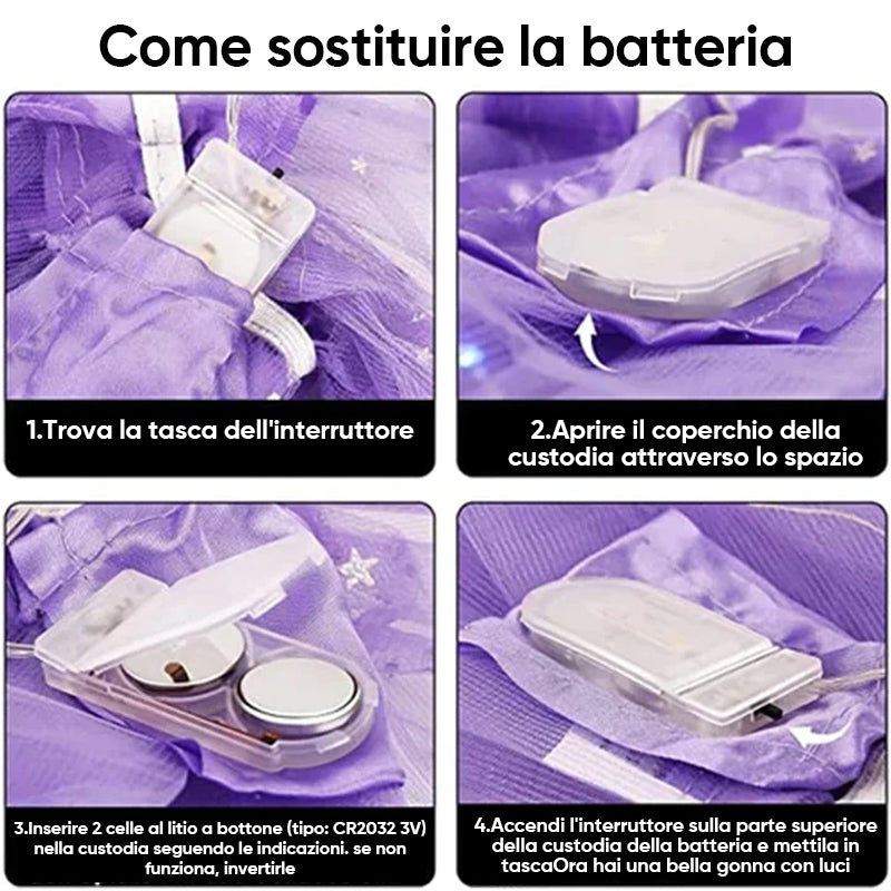 Falli sentire come la principessa che sono, durante le festività natalizie! Questo accattivante tutù con luce a LED porterà eccitazione e sorriso alla tua bambina.