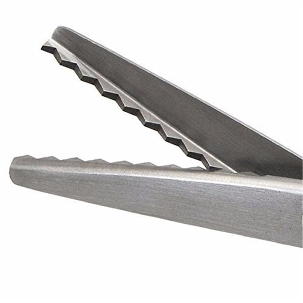 - FORBICI MULTIFUNZIONALI CON LAME SEGHETTATE - Le lame affilate sono seghettate e lasciano un motivo a zigzag durante il taglio. Il motivo seghettato limita la lunghezza del filo sfilacciato dei bordi dei tessuti non rifiniti, riducendo così al minimo i danni.