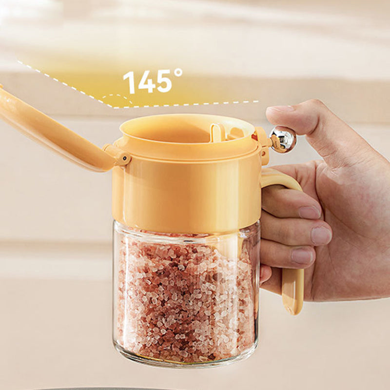 DESIGN A LEVA: Apri il barattolo senza sforzo con una leggera pressione. Il coperchio inclinato a 145° garantisce un’apertura ampia per prelevare facilmente le spezie e riempire velocemente. Niente più lotta con coperchi rigidi—perfetto per cucine sempre in attività.
