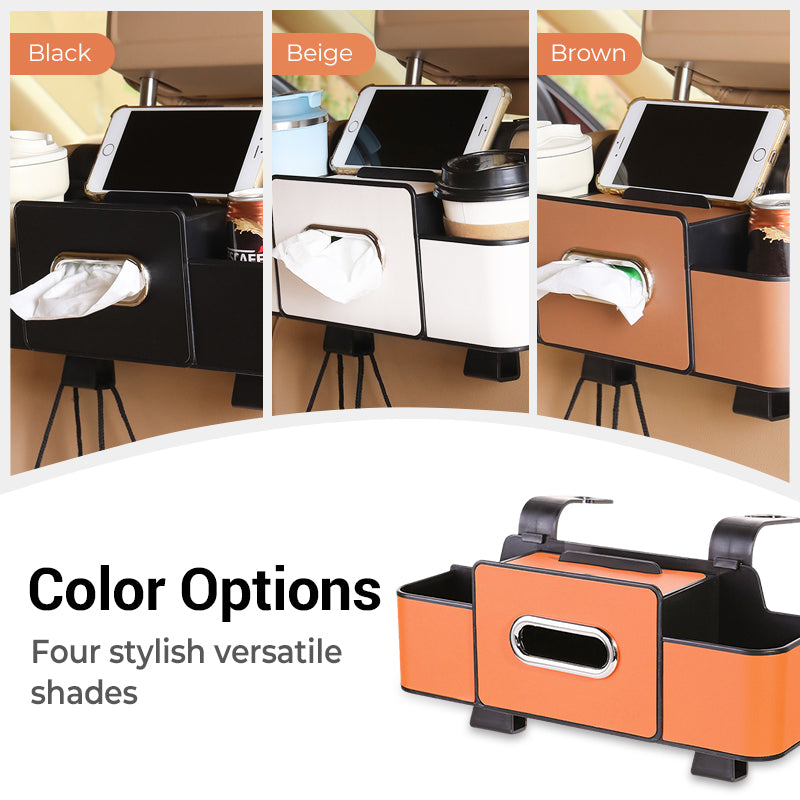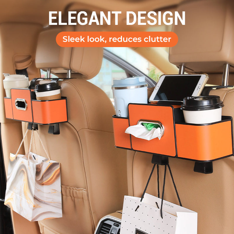 STOCCAGGIO MULTIFUNZIONE: Dotata di portatelefono, scomparto per fazzoletti, portabicchieri e ganci di alta qualità, può trasformare il sedile posteriore della tua auto in uno spazio ordinato e pratico.
