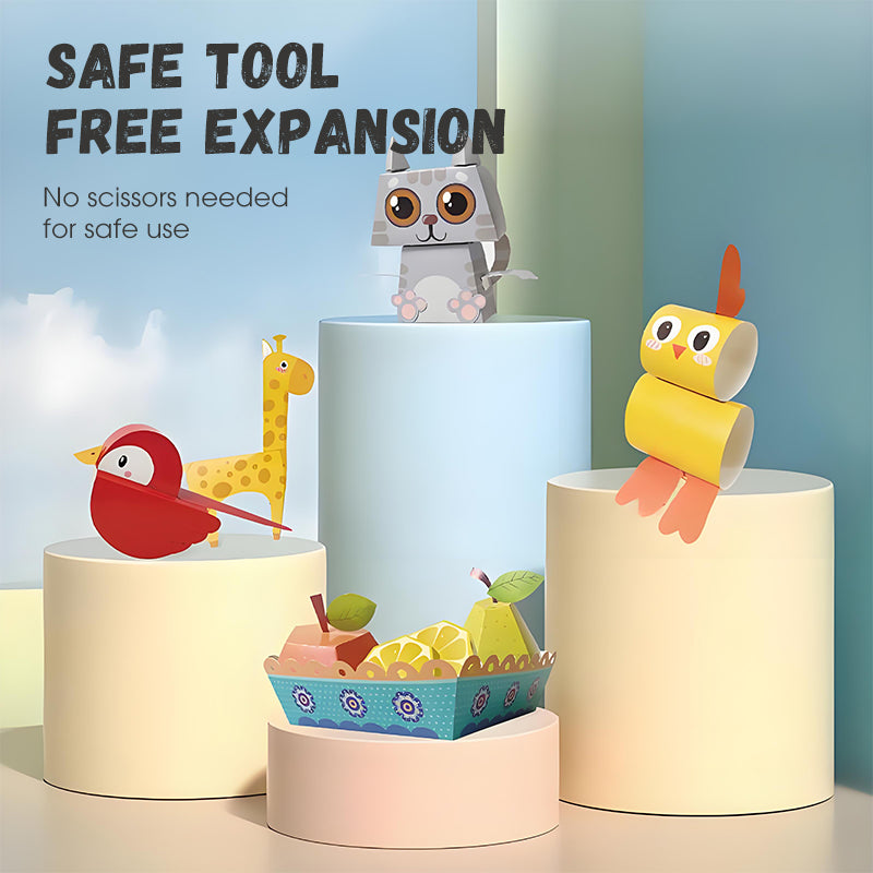 DESIGN SICURO E SENZA USO DI ATTREZZI: La sicurezza è una priorità. Il libro utilizza una tecnica di fustellatura con linee di taglio integrate nella carta, eliminando la necessità di forbici. Ideale per i bambini più piccoli, permette loro di divertirsi con l’origami senza rischi di tagli, offrendo ai genitori maggiore tranquillità.