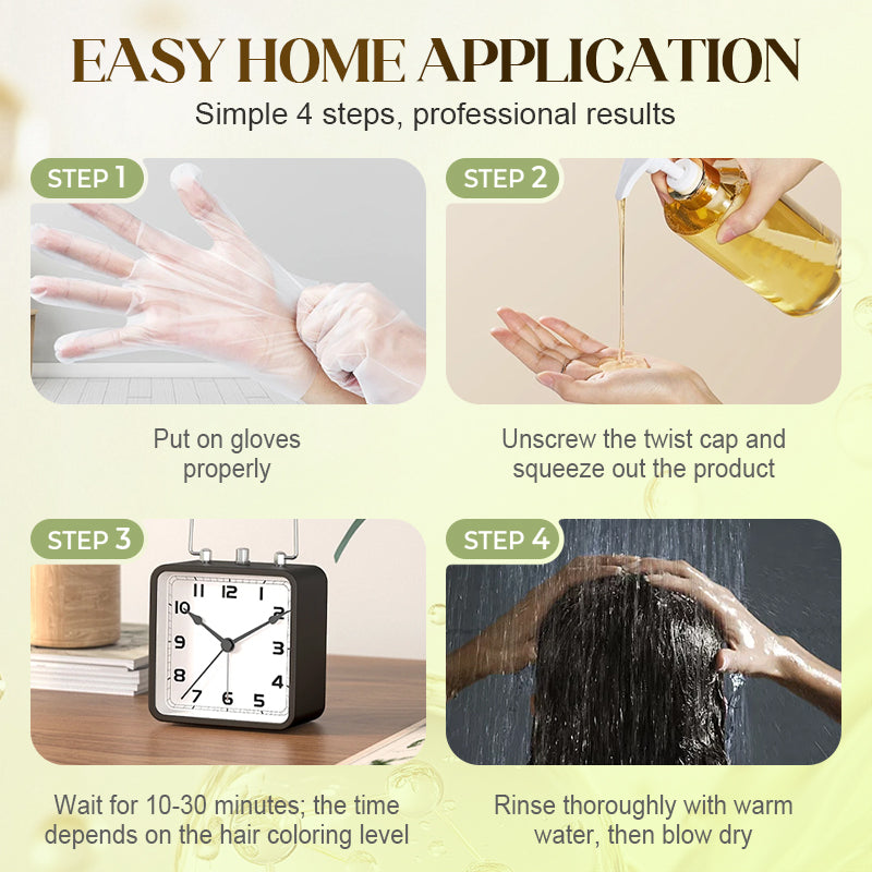 Semplice tintura a casa - Trasforma la tua esperienza di colore dei capelli con un processo di applicazione incredibilmente semplice. Non è necessario miscelare i prodotti, basta applicarli direttamente. Con soli quattro semplici passaggi, potrete ottenere risultati dall'aspetto professionale nel comfort di casa vostra, risparmiando tempo e denaro e ottenendo il controllo della vostra routine di cura dei capelli.