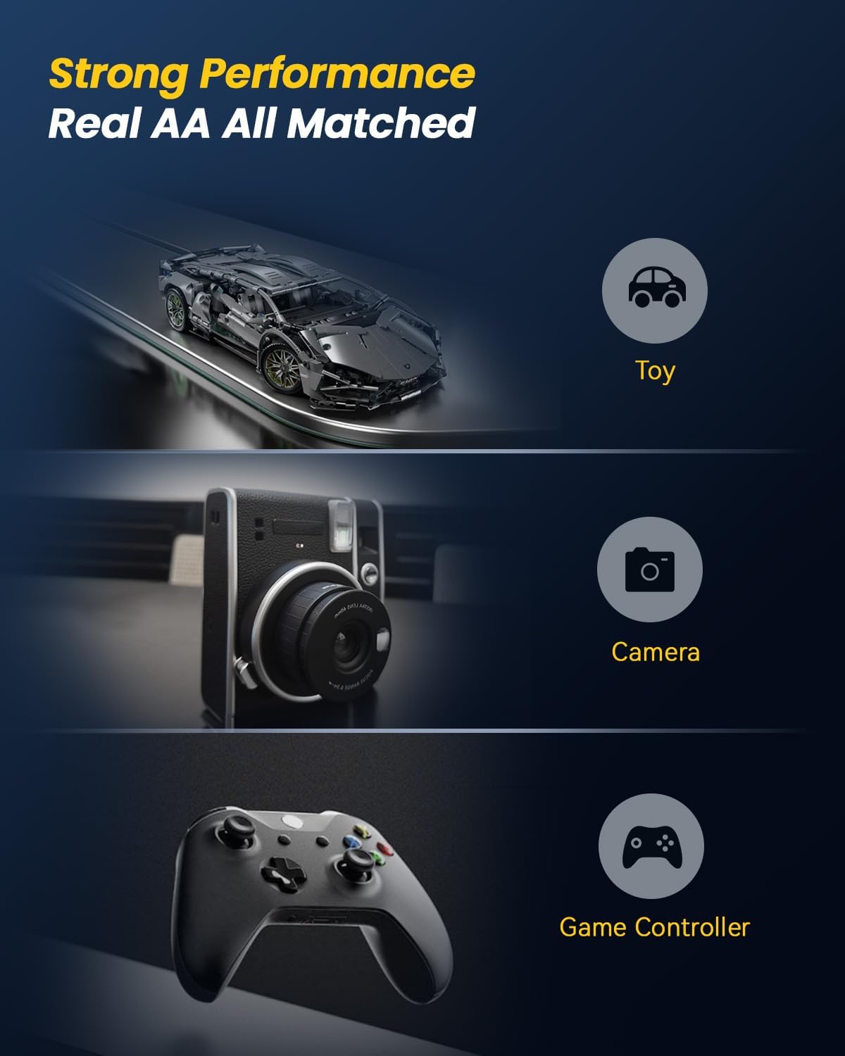 【Display LED intelligente】 La luce LED mostra lo stato di carica. Il verde lampeggiante indica la carica, il verde fisso indica la carica completa, il rosso indica un errore della batteria o lo stato della temperatura. Tutte le batterie AA/AAA possono essere ricaricate completamente in 2,5 ore con il verde fisso.
