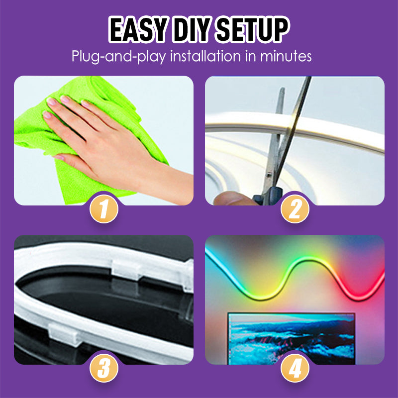 DESIGN FLESSIBILE, INSTALLAZIONE SEMPLICE - Piegala. Ruotala. Modellala come preferisci. Questa striscia ultra flessibile si installa in pochi minuti, adattandosi facilmente a qualsiasi superficie o contorno. Incornicia il tuo monitor, ricalca le pareti o illumina la tua scrivania: è creatività plug-and-play per il tuo stile unico.