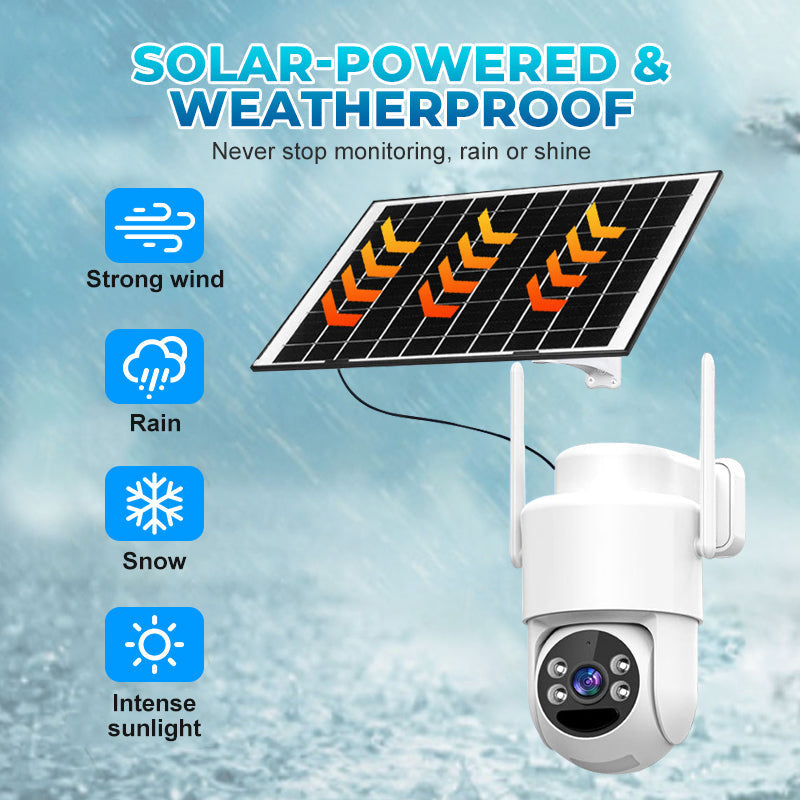 DESIGN ALIMENTATO A ENERGIA SOLARE E RESISTENTE ALLE INTEMPERIE: non dovrete più preoccuparvi delle batterie scariche o delle condizioni meteorologiche avverse. Questa telecamera si ricarica tramite energia solare e presenta un grado di impermeabilità IPX6, garantendo un funzionamento ininterrotto in caso di pioggia, neve o temperature estreme.