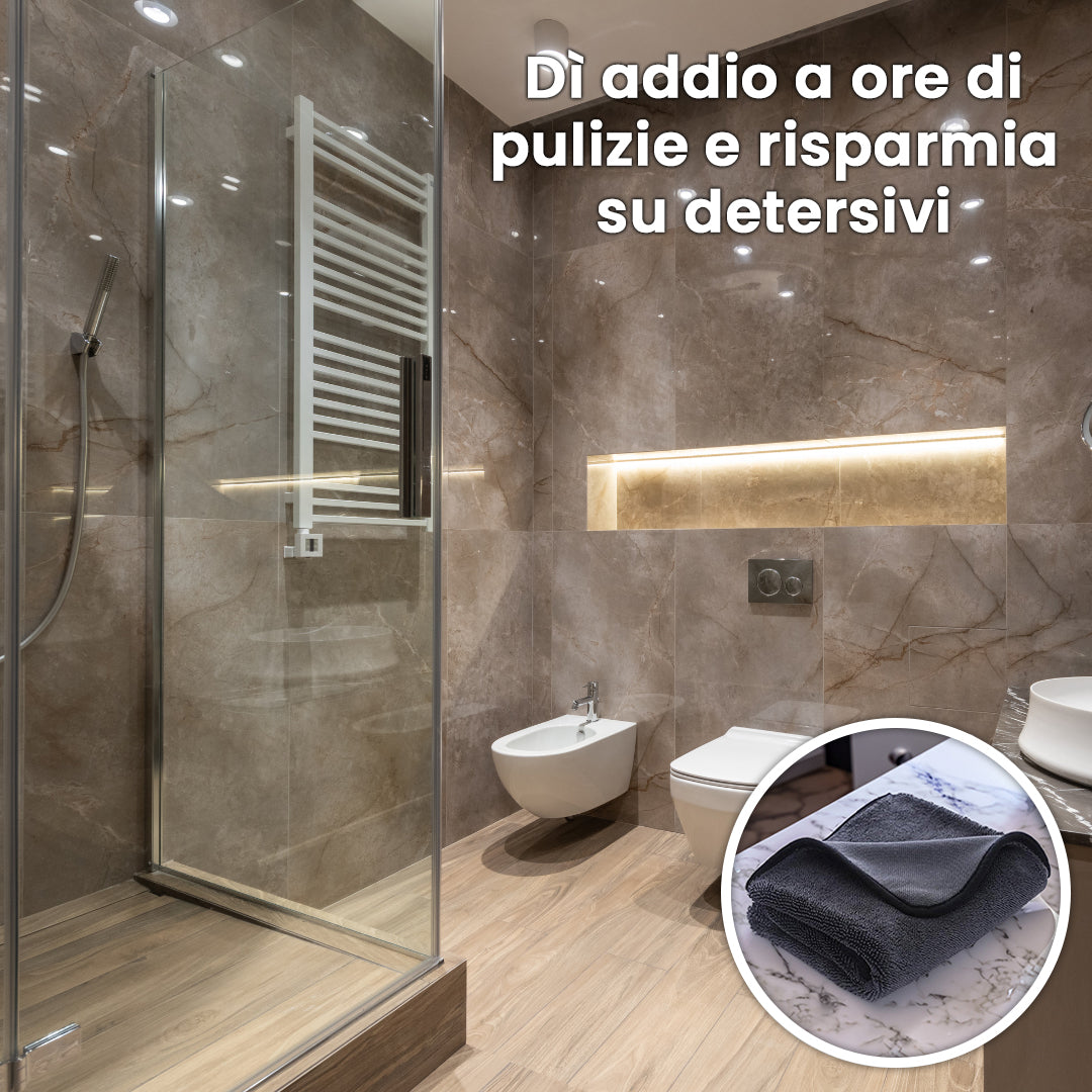Con il rivoluzionario panno ultra-assorbente Glamere puoi finalmente tenere il bagno sempre pulito e in ordine senza perdere ore a strofinare e senza sudare 7 camicie!