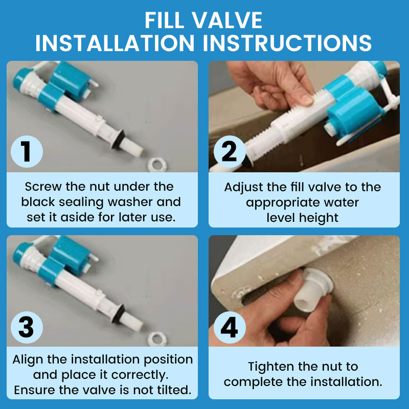 COMPATIBILITÀ UNIVERSALE: Progettata per adattarsi alla maggior parte dei wc da incasso e sospesi, questa valvola di riempimento ha una connessione universale standard 1/2, rendendola ideale per qualsiasi configurazione del bagno.