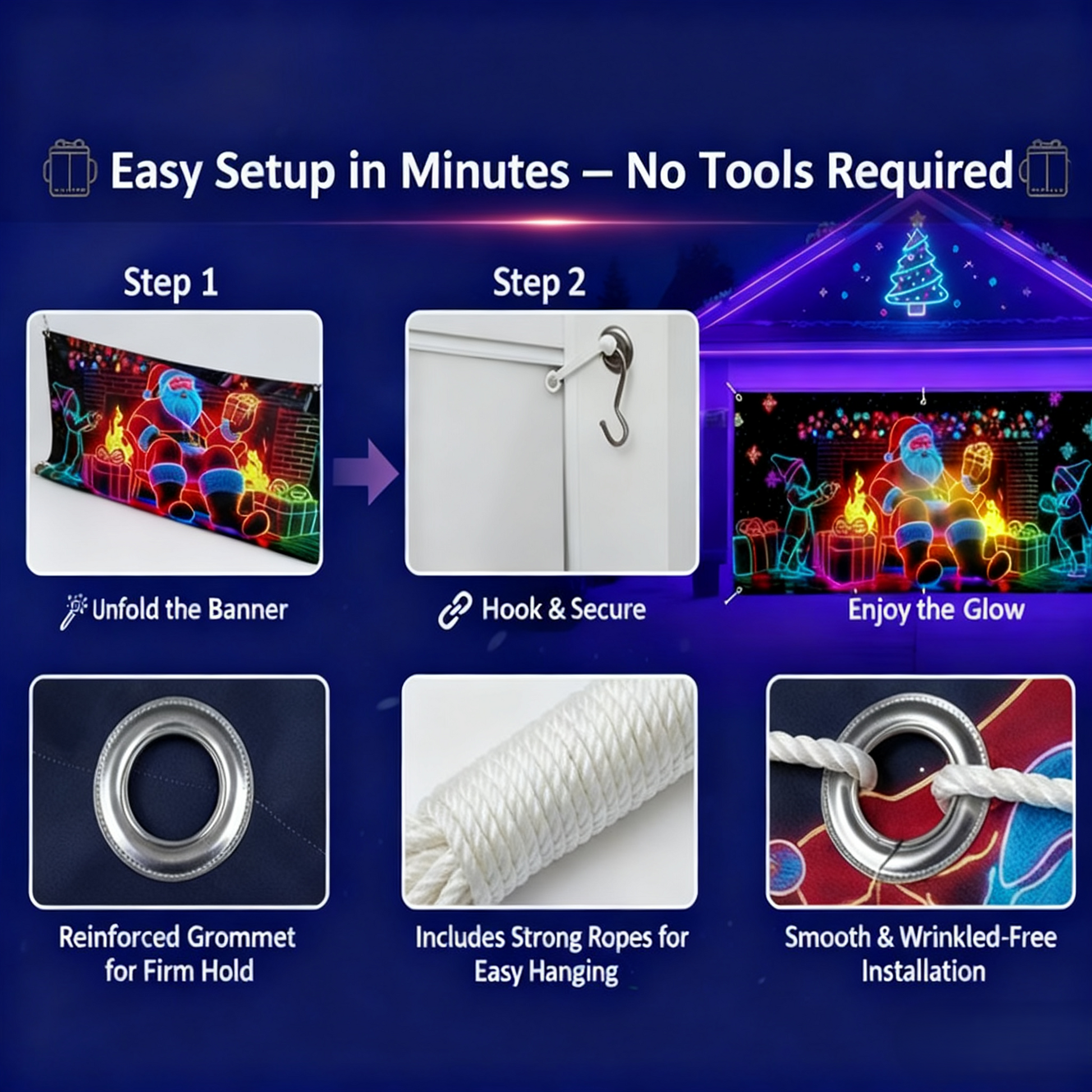【Uso versatile】: Progettato per l'uso in garage, questo festo striscione è adatto anche per feste e decorazioni murali natalizie.