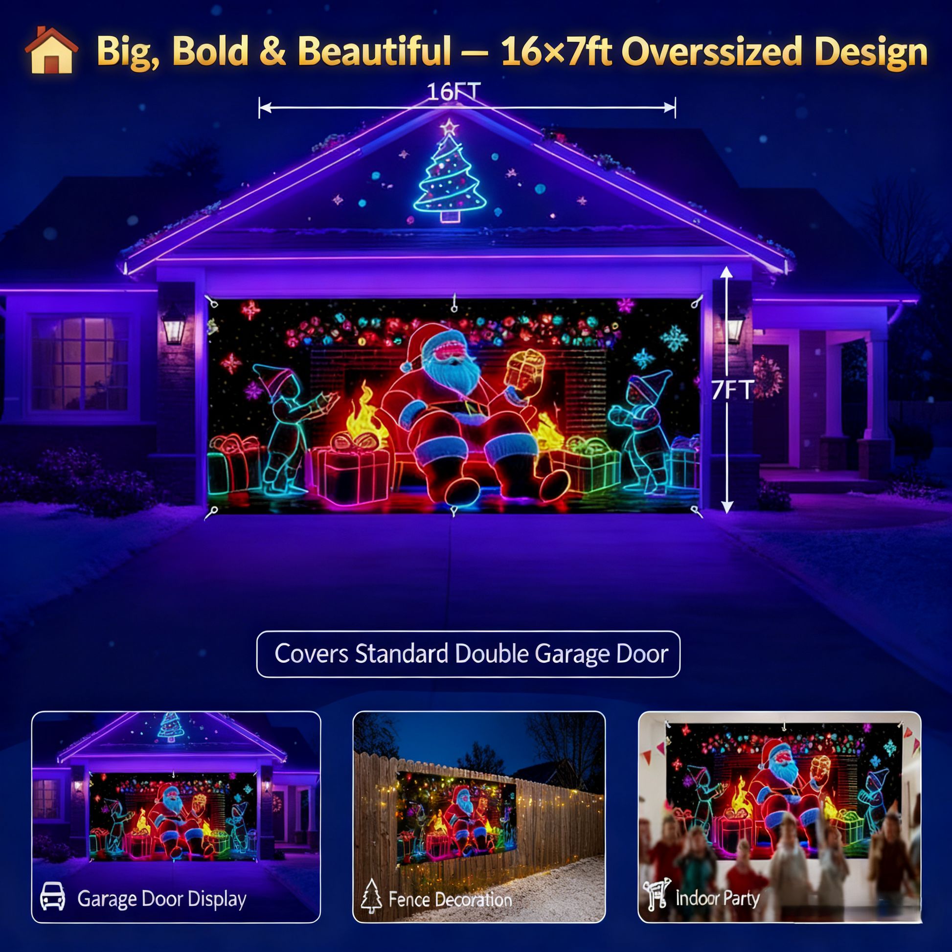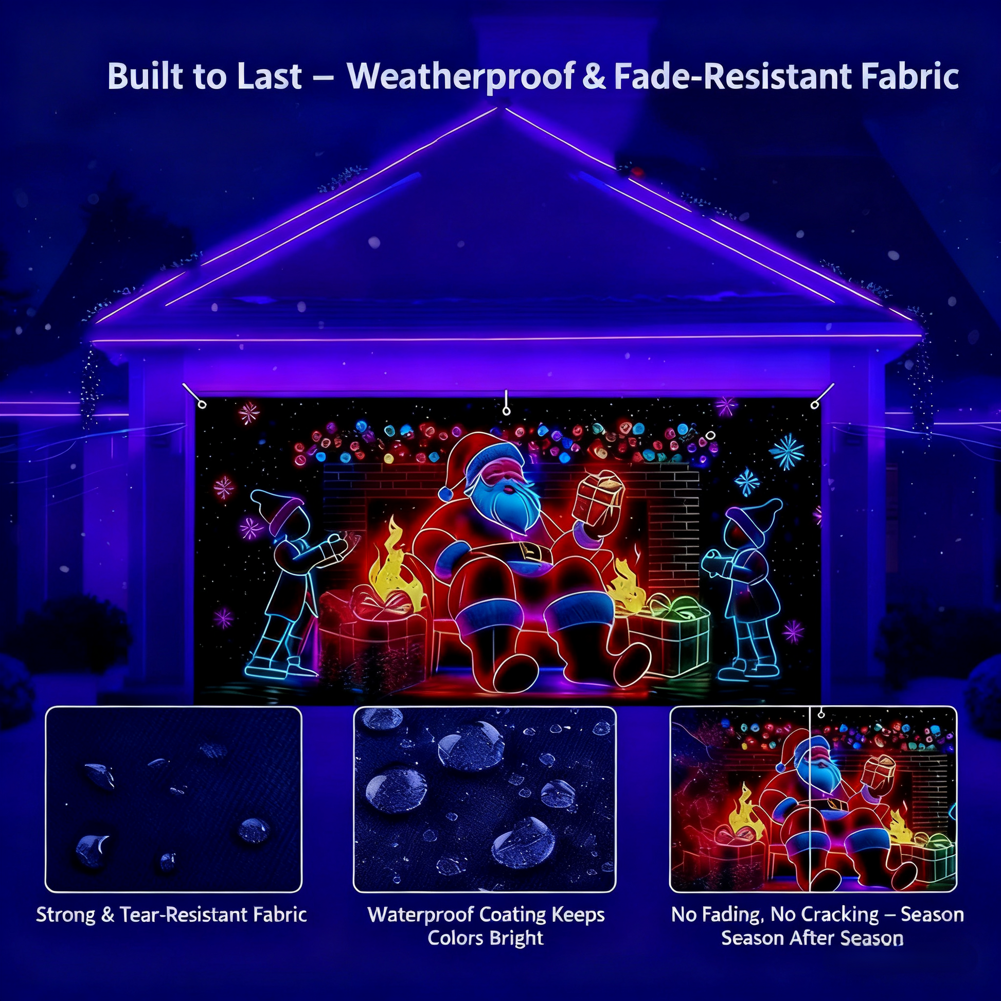 🎇🚪Striscione natalizio per porta da garage attivato dai raggi UV, si illumina al buio🔥🎉