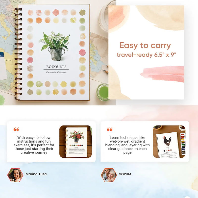 ISTRUZIONI PASSO PASSO – Il quaderno contiene istruzioni dettagliate e passo dopo passo per aiutarti a padroneggiare i fondamenti della pittura ad acquerello. Impara tecniche come il bagnato su bagnato, la sfumatura e la stratificazione con indicazioni chiare su ogni pagina.